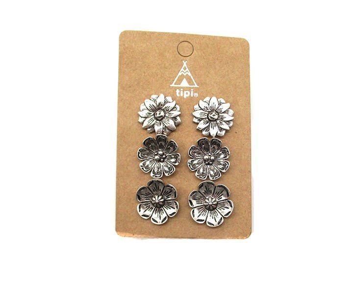 Western Flower Concho 3 Pair Post Earring Set